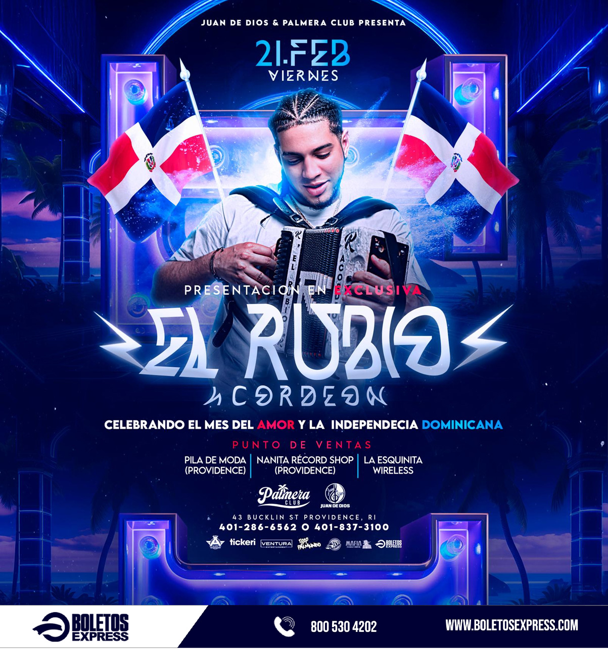 Prepare for an incredible night of vibrant music and unforgettable energy with El Rubio Acordeón, coming to the Palmera Club in Providence, Rhode Island!