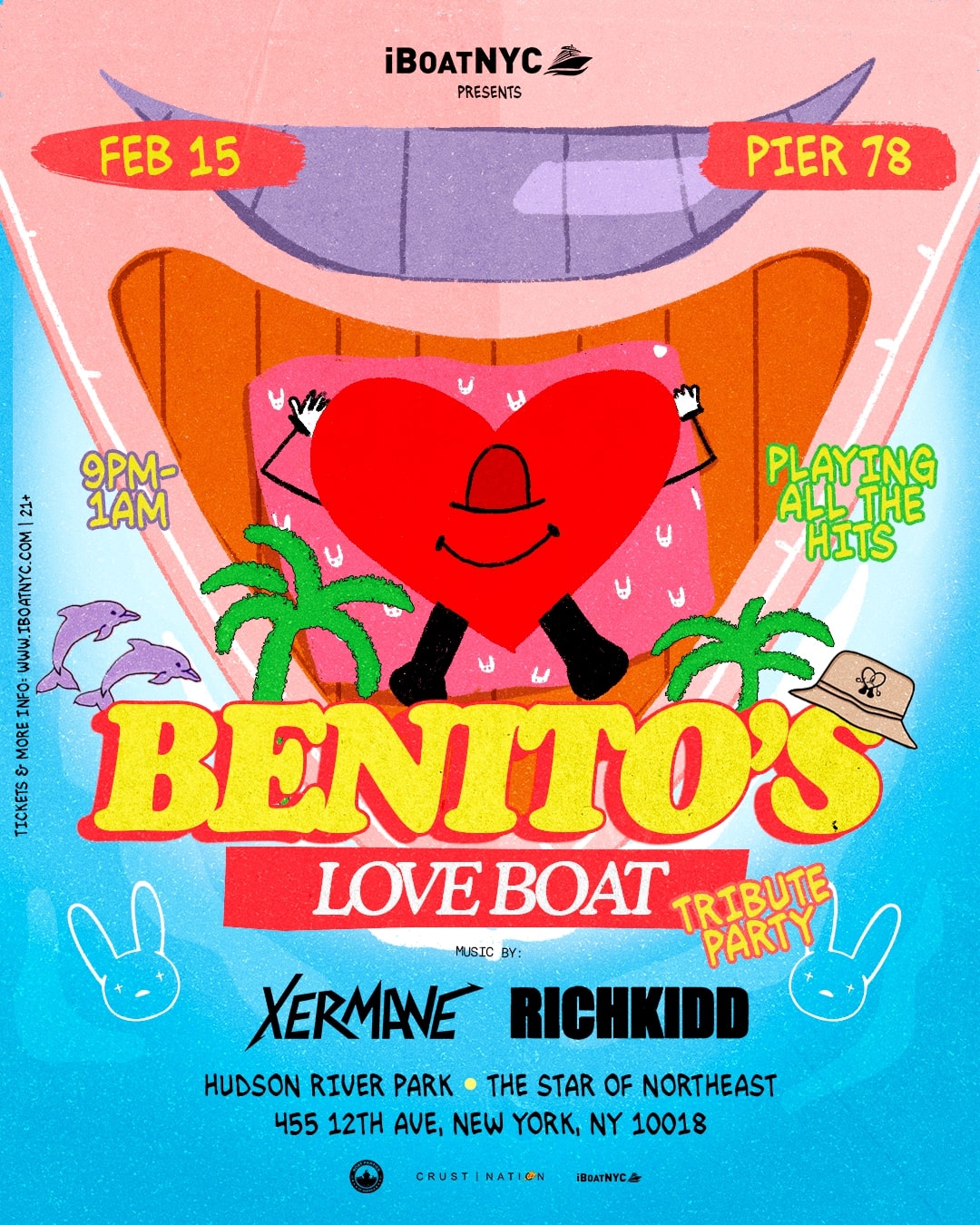 Set sail on Benito's Love Boat this Valentine's Day and experience a night inspired by the energy and passion of B*d Bunny’s greatest hits.