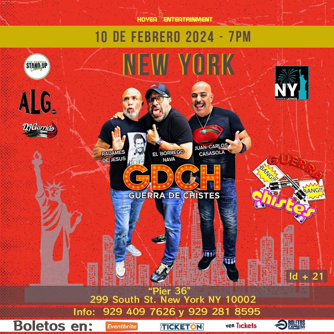 GDCH regresa a Nueva york este Sabado 10 de Febrero, el Borrego Nava, Juan Carlos Casasola y Radames de Jesus, Regresan con un show recargado para hacernos reir a carcajadas. las puestas abren a las 7.00pm y el show empieza 8.00pm.