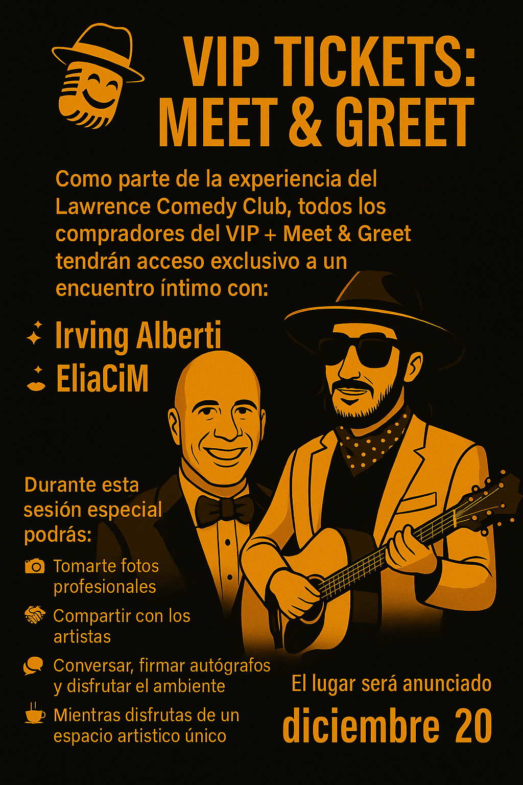 Como parte de la experiencia del Lawrence Comedy Club, todos los compradores del VIP + Meet & Greet |
