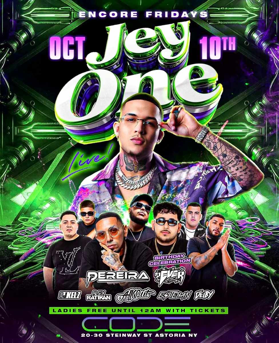 Join us for Jey One Live, DJ Ever’s birthday bash, and Queens’ top Friday night party at CODE Astoria.